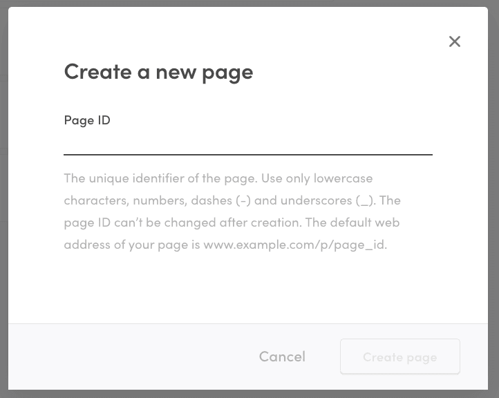 As the page ID for this first page, enter "articles". This will be the collection page where you will link all your individual articles, and you can see the page in [your-marketplace-url.com]/p/articles.