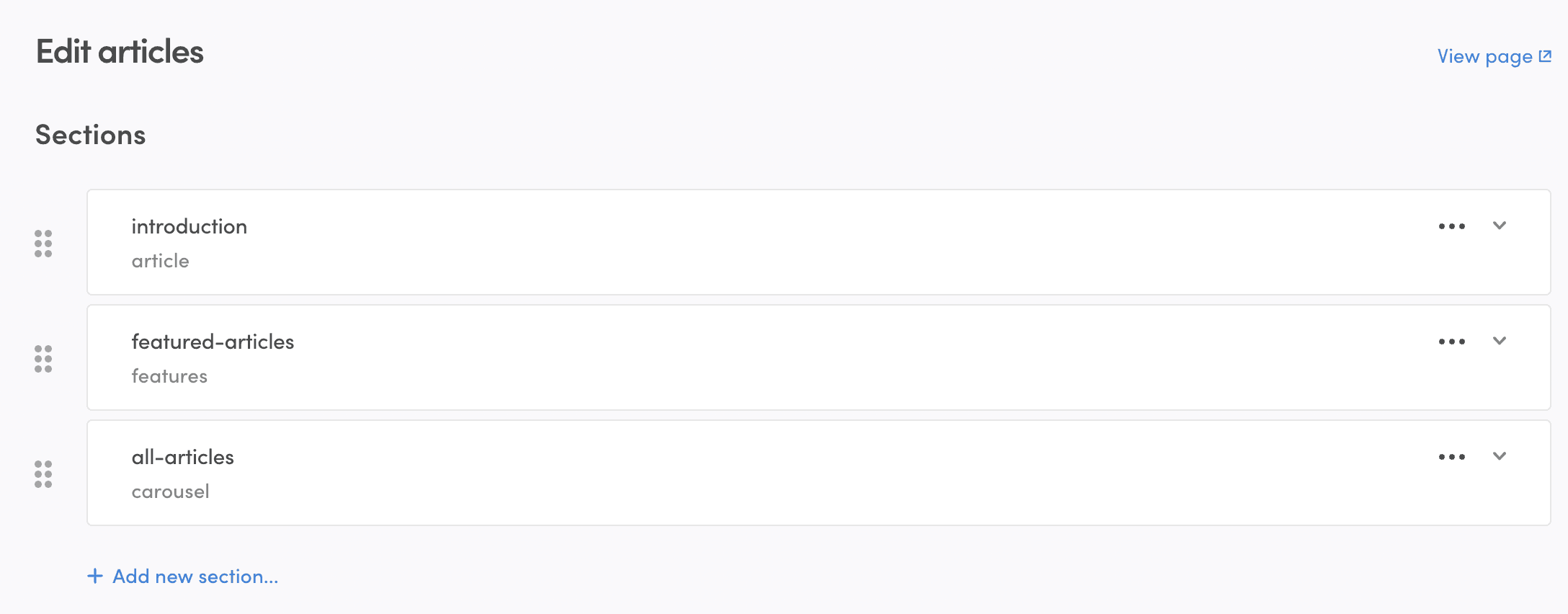 After you create the page, you can start adding new sections.