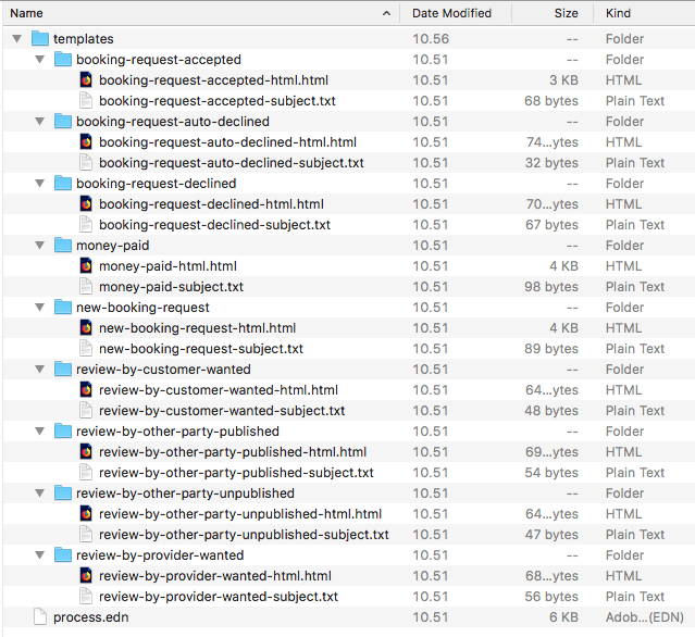 • templates directory, which contains all the transaction email templates for this process