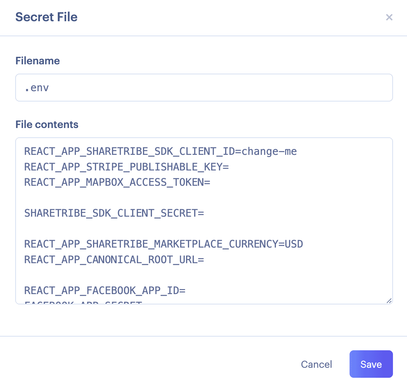 SHARETRIBE_SDK_CLIENT_SECRETFlex client secret. Check this from Console.
